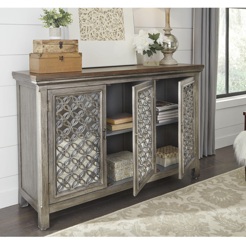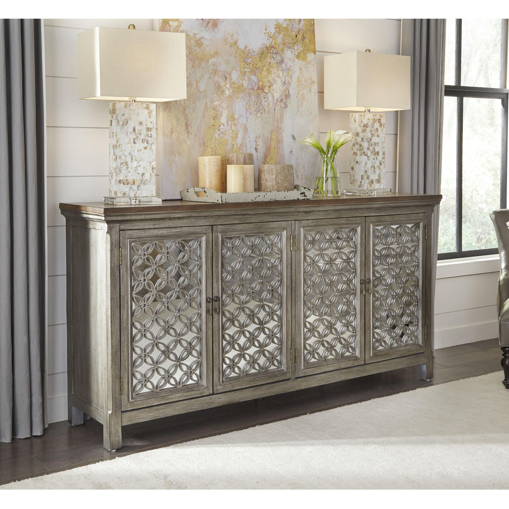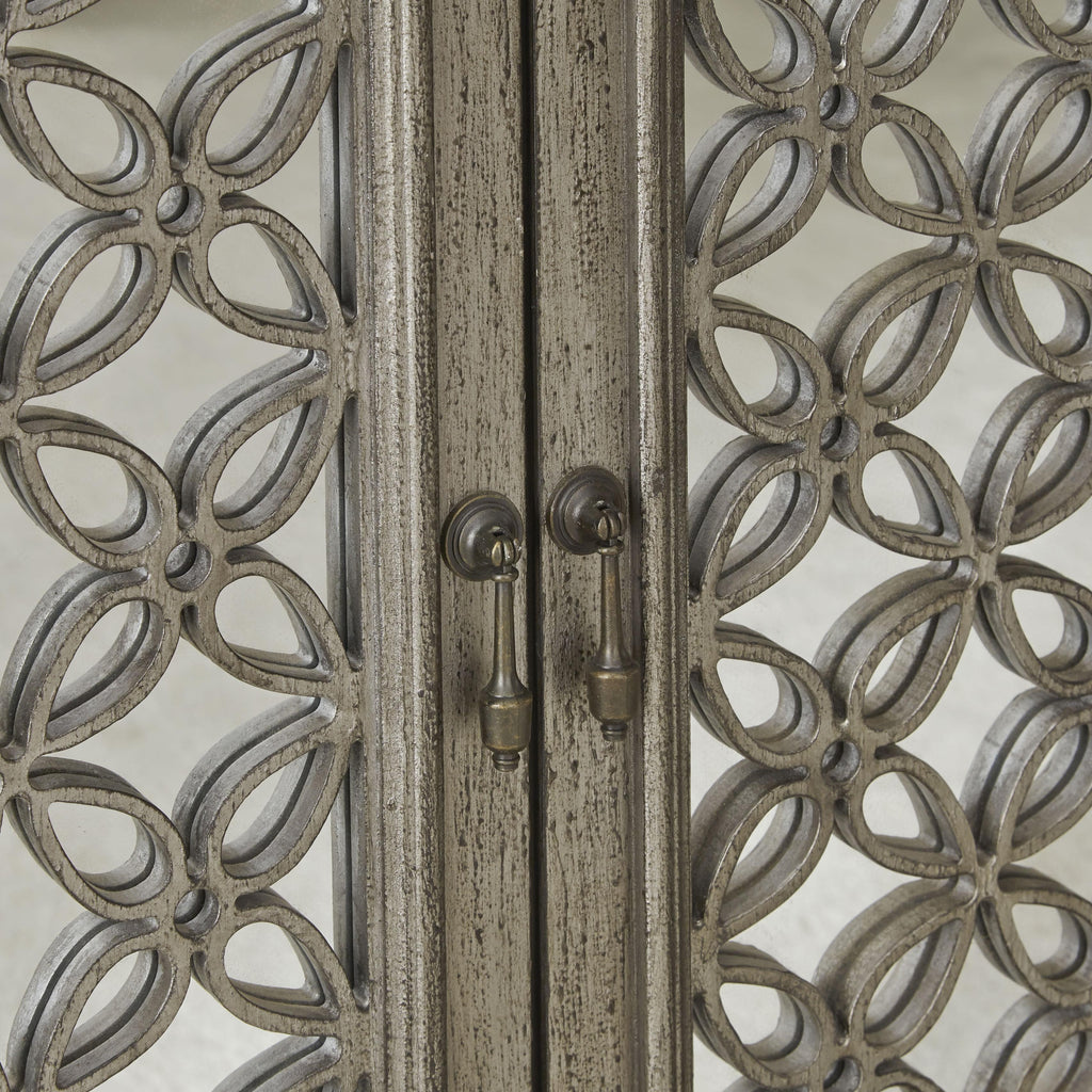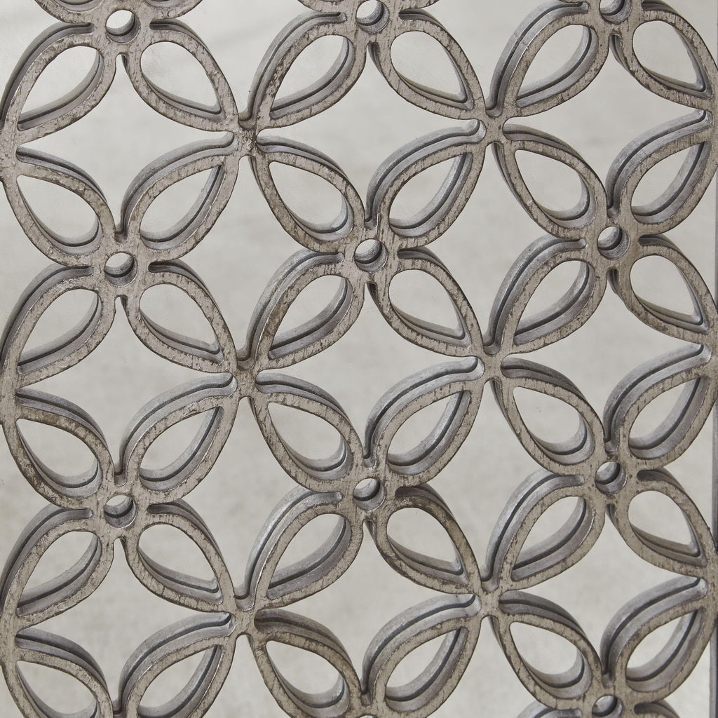 • Decorative overlay in a floral pattern and mirrored glass