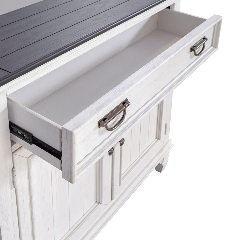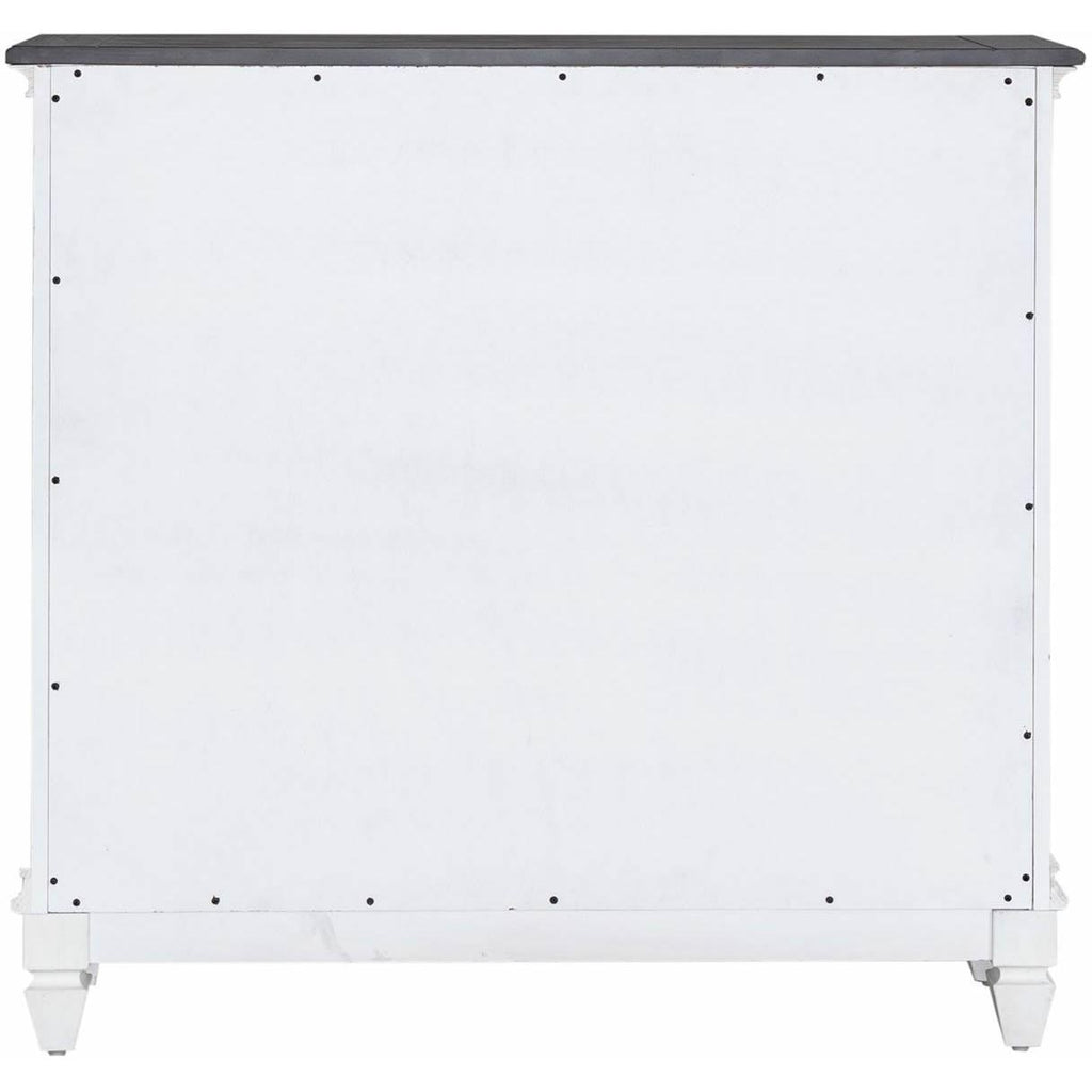 • Finish: Wire-brushed white finish with charcoal top