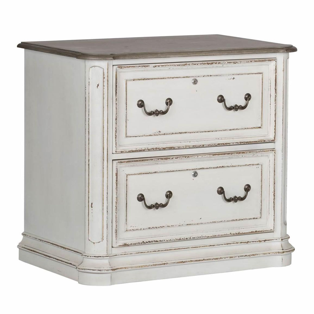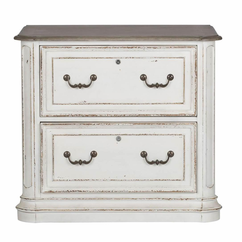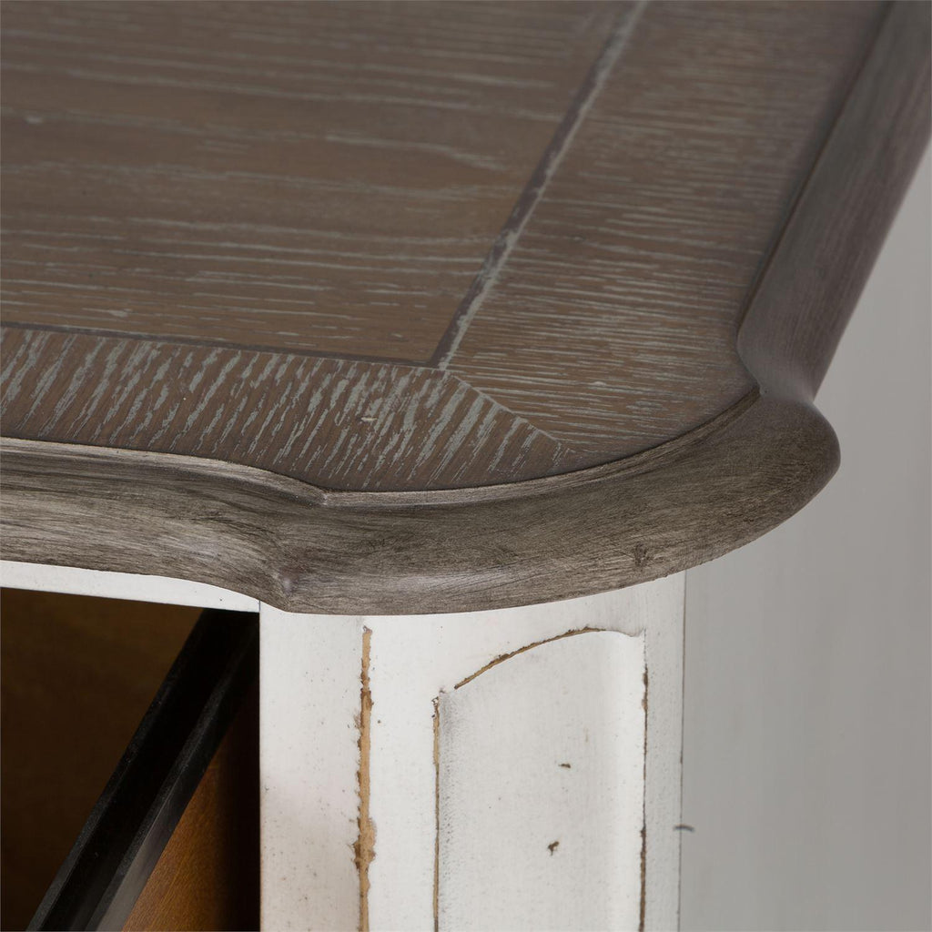 • Distressed antique white finish