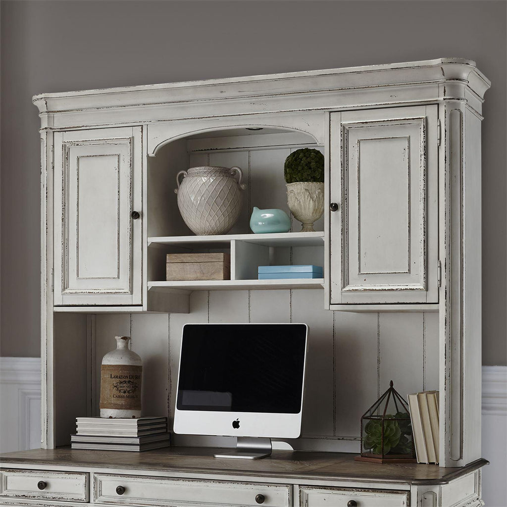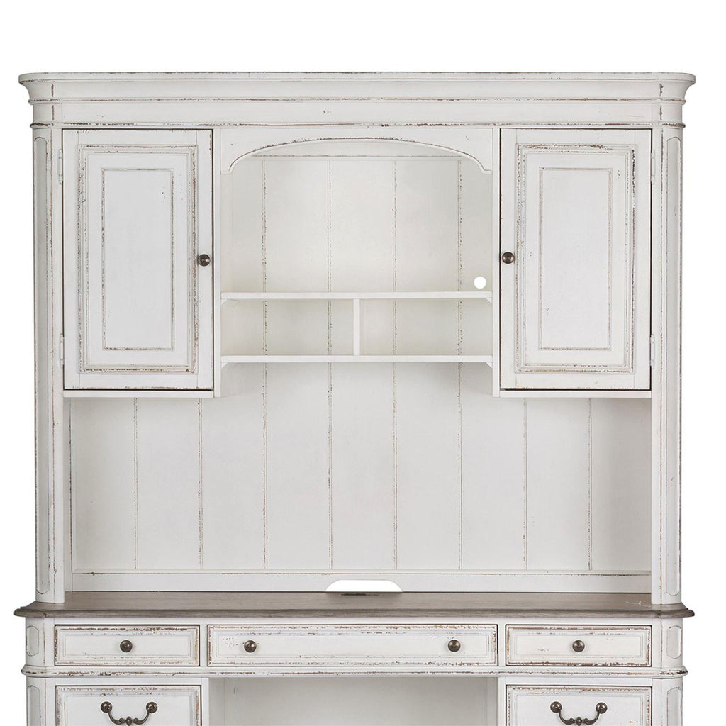 • Distressed antique white finish