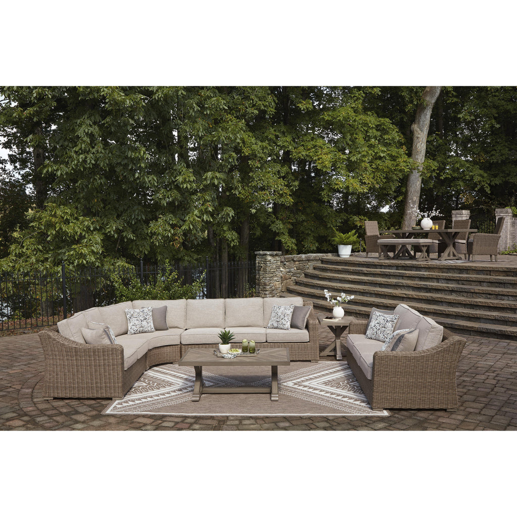 • Includes 4 pieces: right-arm and left-arm facing loveseat, armless chair and curved corner chair